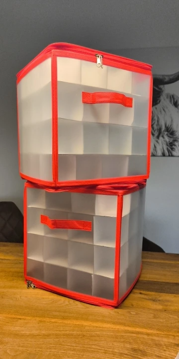 Storage for your Christmas baubles: Christmas ornaments storage is crafted of breathable nonwoven material, protecting your Xmas ornaments from moisture. Close lid zippers for safe and protected storage, with no dust or grime accessing your ornaments. Spare yourself the expense of purchasing new ones every year.